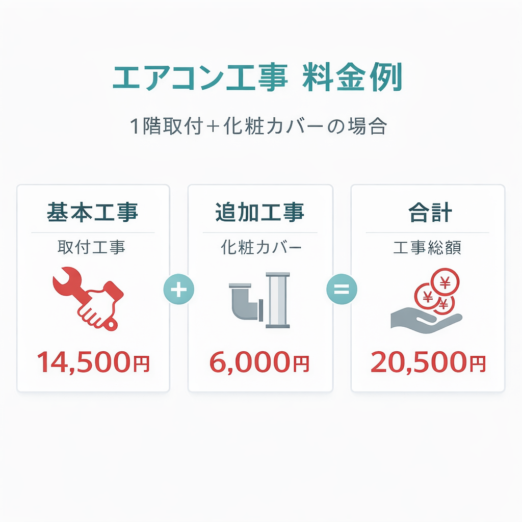 基本工事の料金が安く見えても、追加料金を含めると結果的に高額になる業者もあります。 配管部材が基本料金に含まれていなかったり、